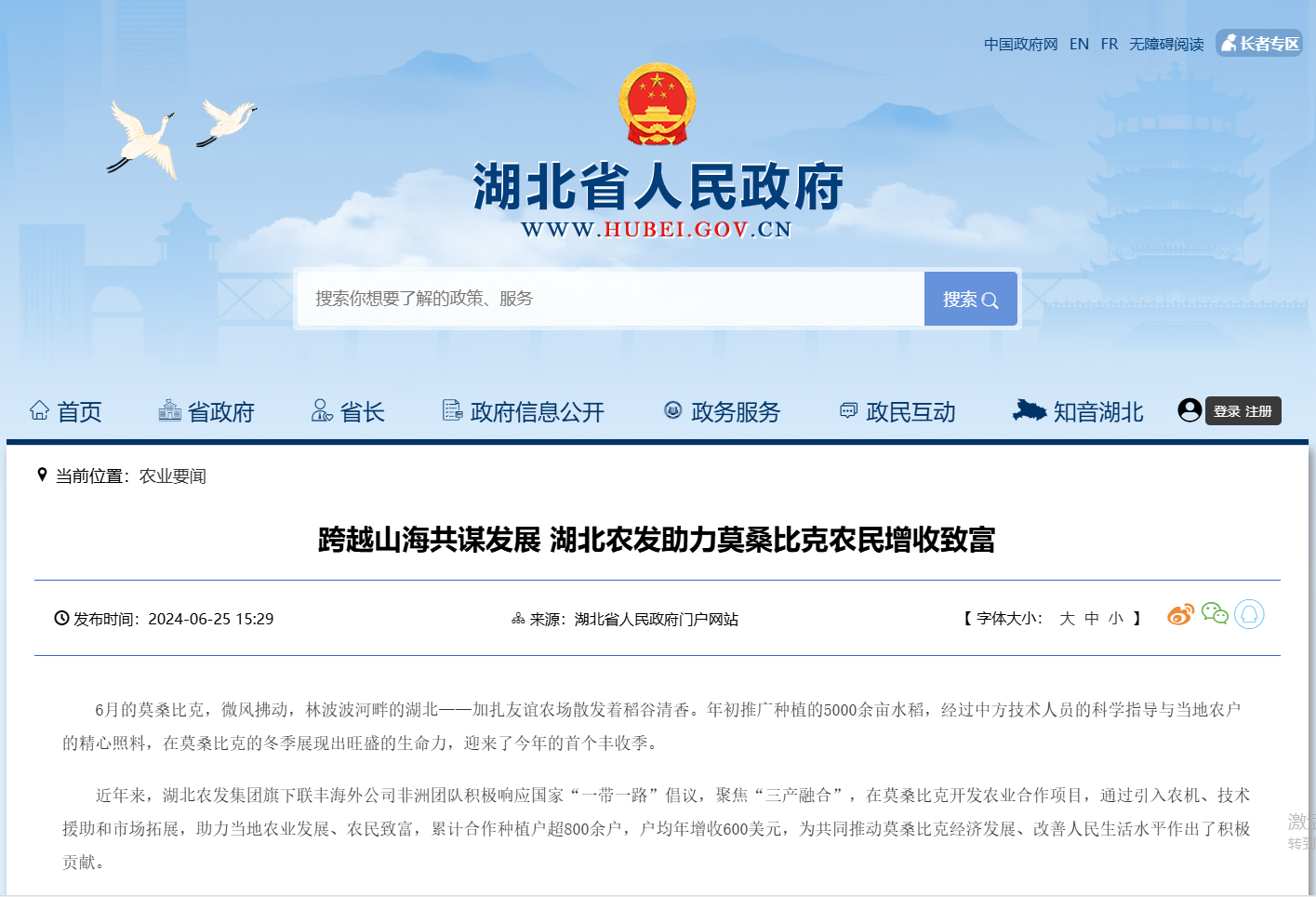 湖北省人民政府:跨越山海共謀發展 湖北農發助力莫桑比克農民增收緻富